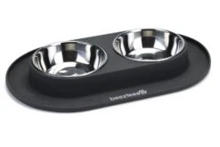 Wil je een mooie en vrolijke dinerset voor jouw hond? Dan is deze Beeztees Dinerset van siliconen en RVS iets voor jou! Deze siliconen dinerset bestaat uit een geheel en heeft een opstaand anti mors randje. Hierdoor wordt eventueel gemorst water door de dinerset opgevangen, zodat dit niet direct op de vloer terecht komt. In het siliconen gedeelte zitten 2 RVS bakjes die beide uitneembaar zijn. De dinerset is in zijn geheel vaatwasserbestendig.