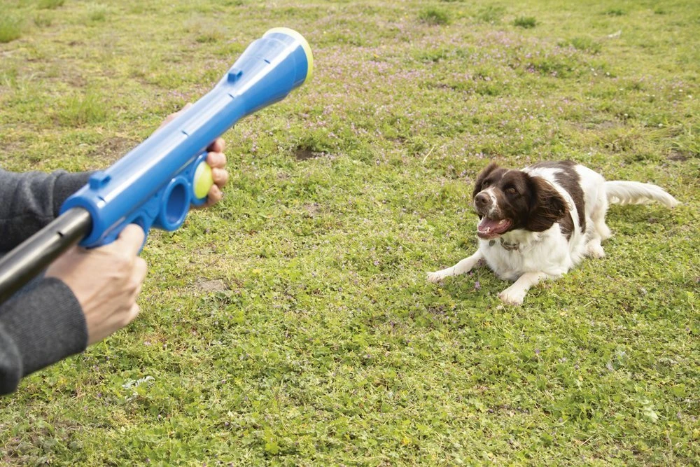 Beeztees hondenspeelgoed de Fetch Ballenschieter heeft meerdere voordelen. Zo schiet deze ballenschieter de ballen lekker ver weg, zodat jouw hond veel beweging krijgt. Daarnaast zorgt dit speeltje er ook voor dat kinderen het leuker vinden om met de hond naar buiten te gaan. Want wie vindt het nou niet stoer om ballen weg te schieten? Bovendien bevat het speeltje een opslag voor twee tennisballen, zodat je de ballen niet zomaar kwijt raakt. De felle kleuren van de ballen zorgen ervoor dat deze gemakkelijk terug te vinden zijn. Gebruiksaanwijzing: trek de hendel naar achteren en stop een bal aan de voorkant in de schieter. Druk vervolgens het knopje in en schiet de bal weg.