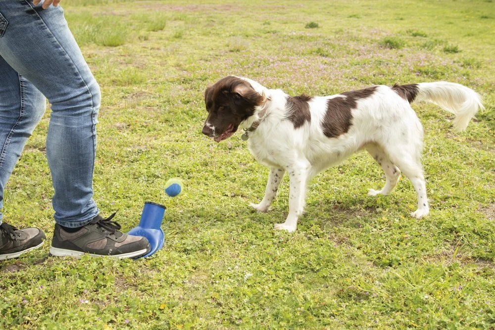 Houdt jouw hond net iets meer van apporteren dan jijzelf. Dan is dit apparaat perfect voor jullie. Deze ballenschieter bedien je namelijk met je voet. Dat kan vanuit je luie stoel, maar natuurlijk ook ideaal voor kinderen of mensen met een schouderblessure die de bal niet zelfstandig weg kunnen gooien. Het gebruik van de Beeztees Fetch Voet Ballenschieter is zeer eenvoudig, stop de tennisbal in de ballenschieter en stap met je voet op de ballenschieter om de bal te lanceren. De bal kan tot wel 10 meter ver geschoten worden.