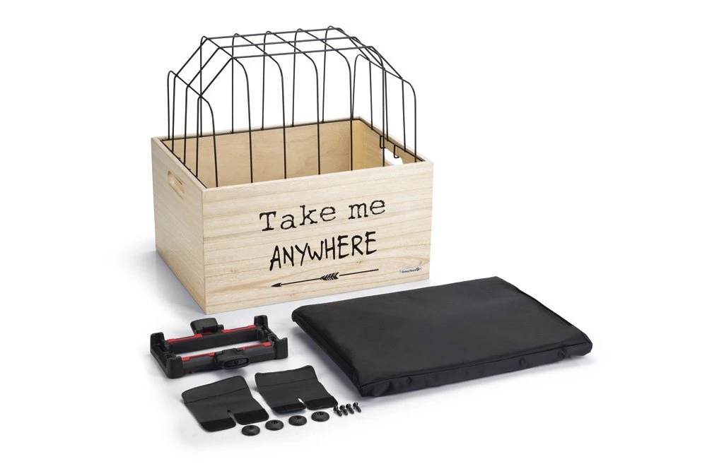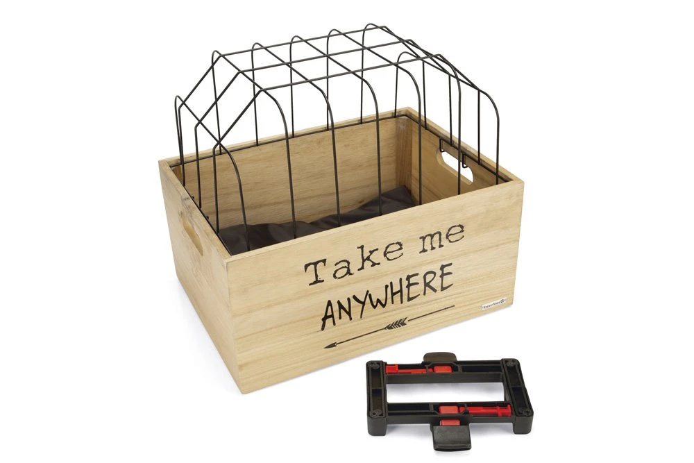 Op zoek naar een hippe fietsmand voor je hond voor achterop de fiets? Dan heb jij deze gevonden! Deze toffe houten krat, met leuke quote of grafische print, is voorzien van een lekker zacht kussentje voor extra comfort. Heb je een beweeglijk hondje, dan is een mand achterop vaak fijner dan voorop, omdat er dan niet aan het stuur wordt getrokken. De kap zorgt ervoor dat jouw hond niet uit het mandje kan springen. De Beeztees fietsmanden worden geleverd met een uniek kliksysteem. Dit kliksysteem is geschikt voor elke (elektrische) fiets met een bagagedrager met een breedte van 9-16 cm en spijlen met een diameter van 8-16 mm (ook geschikt voor V-shape bagagedragers). Inclusief anti- diefstal vergrendeling. Zo gaan jullie een veilige en stijlvolle tocht tegemoet.