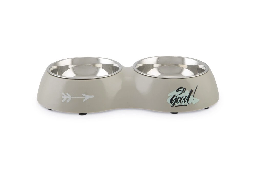 bestaat uit een voer- en drinkbak, zodat jouw hond zijn eten en drinken