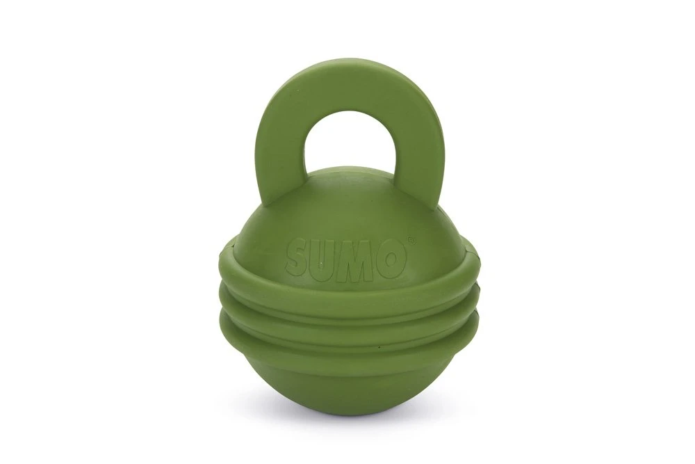 Van de Sumo Play Kettlebell kan jouw hond geen genoeg krijgen! Dit super sterke speelgoed is extra leuk, omdat je er hondenkoekjes in kunt stoppen. Door middel van denkwerk kan jouw hond erachter komen hoe de koekjes uit het speeltje komen. Dit zorgt ervoor dat jouw hond een tijdje bezig is en wordt uitgedaagd! De handgreep zorgt ervoor dat jouw hond het speeltje eenvoudig in zijn bek kan pakken en mee kan nemen.